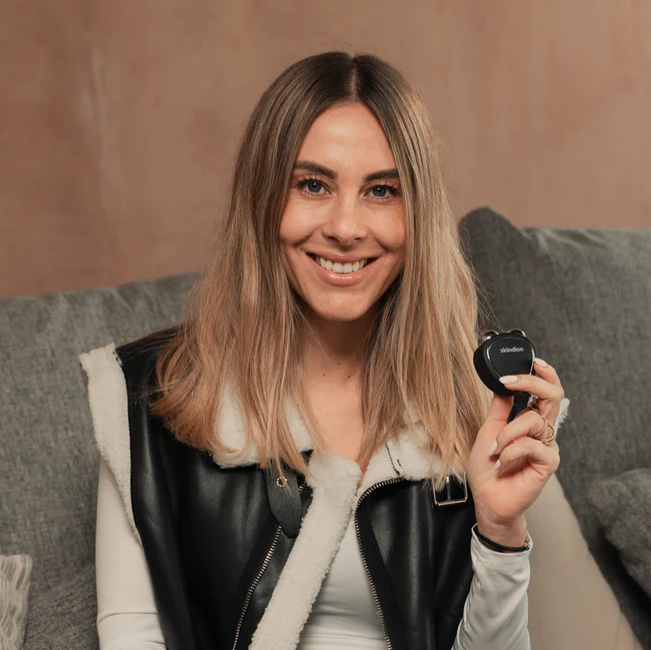 SkinDion acts as a “gym” for your face. Electrical impulses stimulate facial muscles, toning them and improving their firmness over time.